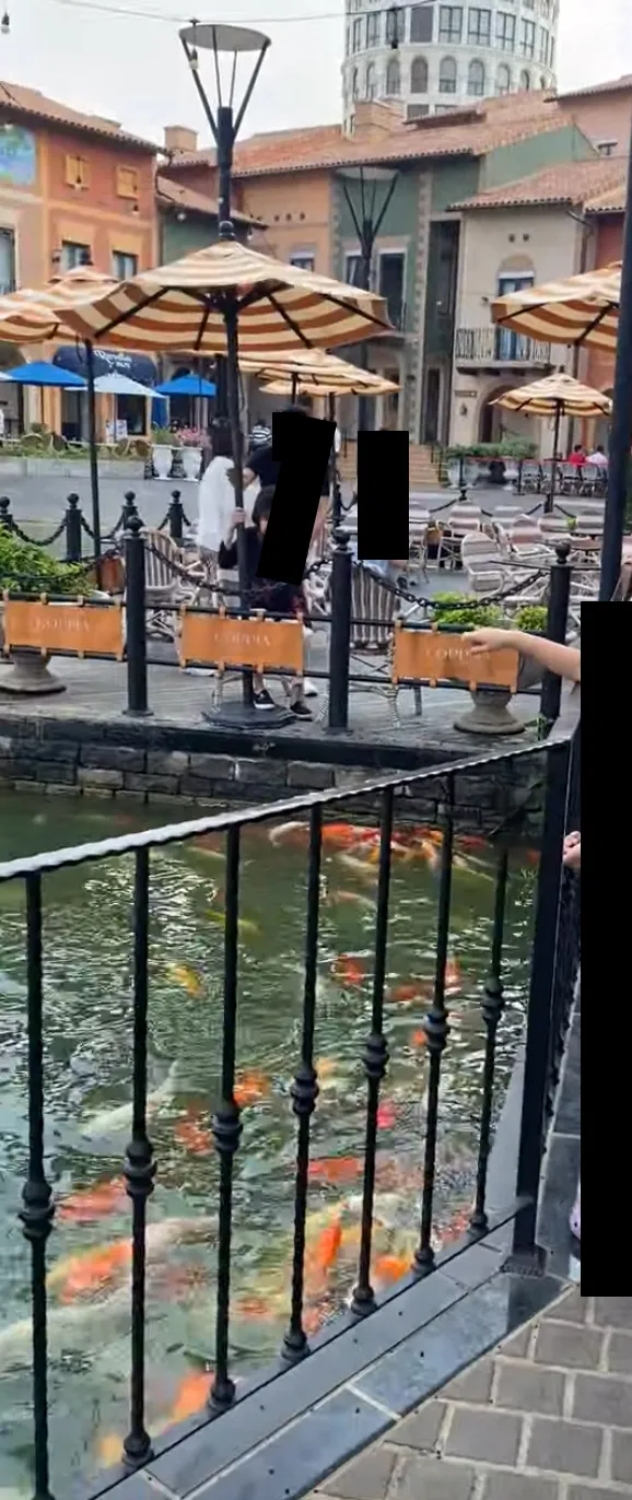 餌をやると、足に水がつくくらい集まる鯉たち