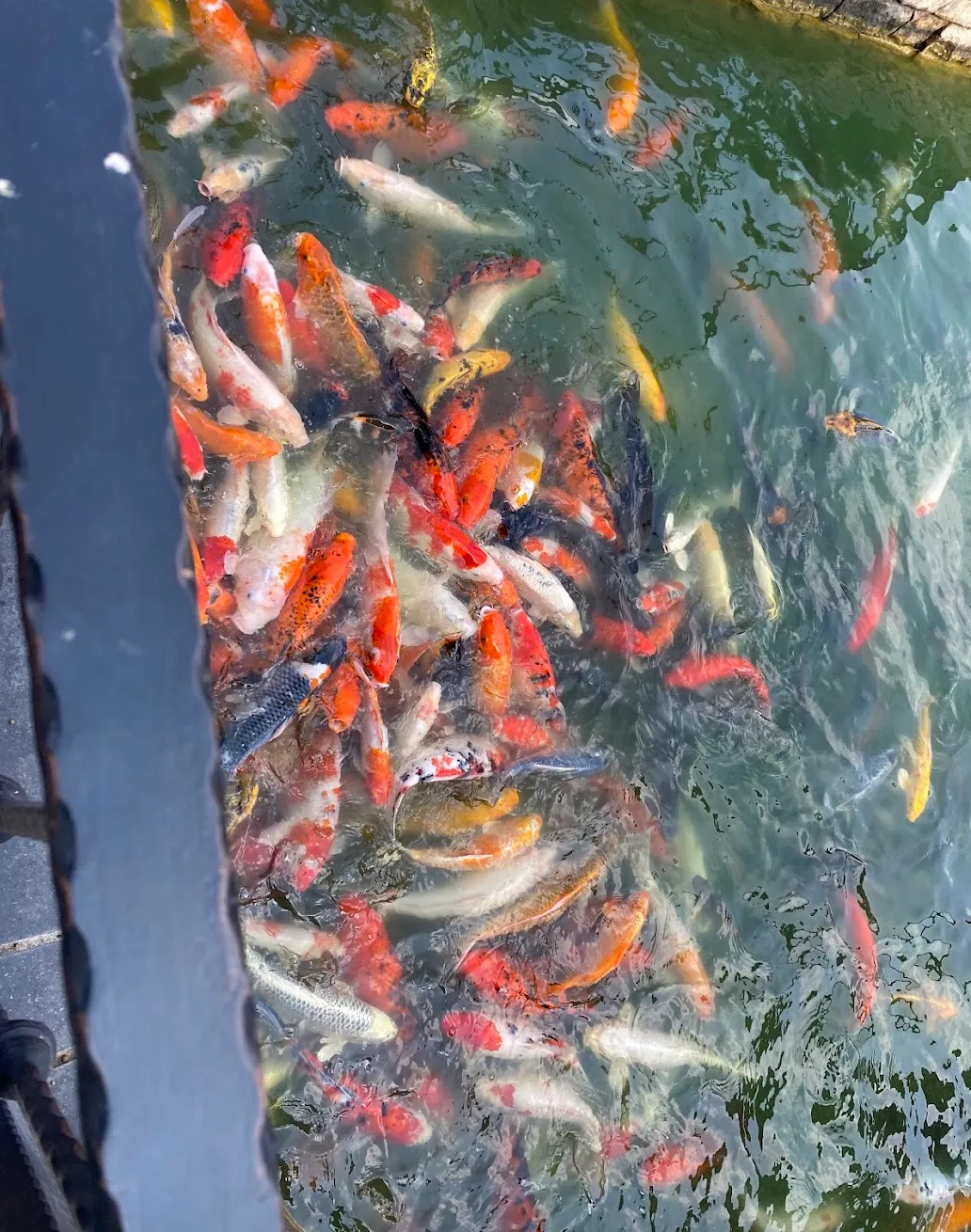 真横の池には鯉が大量にいます。