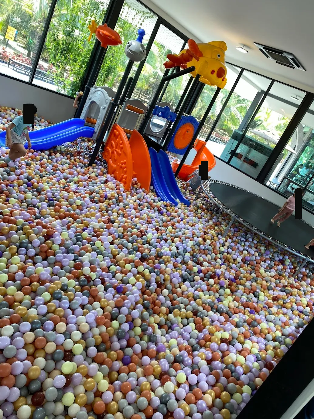 中はボールプール、トランポリンにエア遊具。