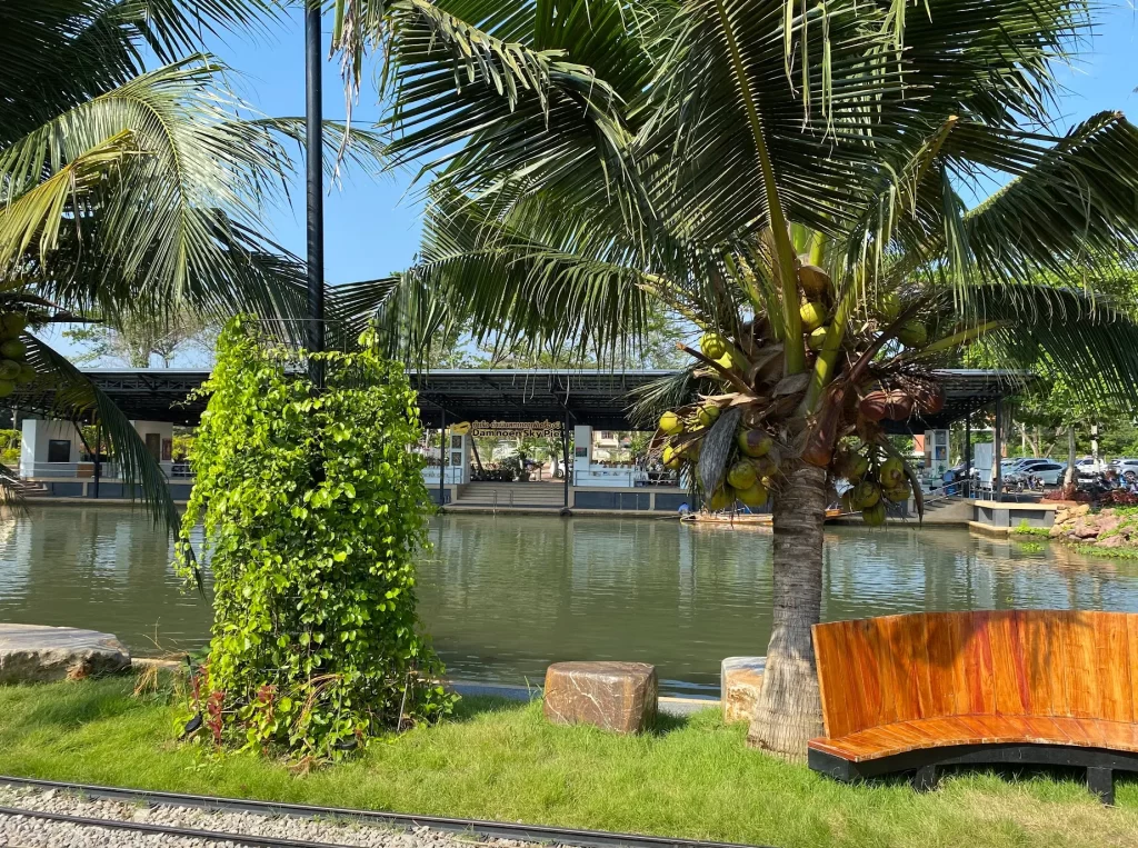 入り口の横は、ダムヌン水上マーケットに行く船着場となっております。