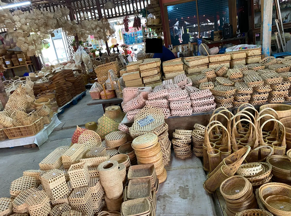 アユタヤ遺跡めぐり。寄り道編その①はゴンコーン市場へ。アユタヤ遺跡群からは車で20分くらいかかりますがこの市場はとても清潔感があって安心して買い物ができます!カゴや陶器など見るだけでも楽しいですよ! pic.twitter.com/E8wGMh6CvK