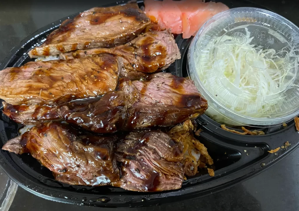 スクンビット33のカシコン銀行のとこの地下、評判のいい カオイープン でサーモン海苔弁当と明太子おにぎり🍙です👍