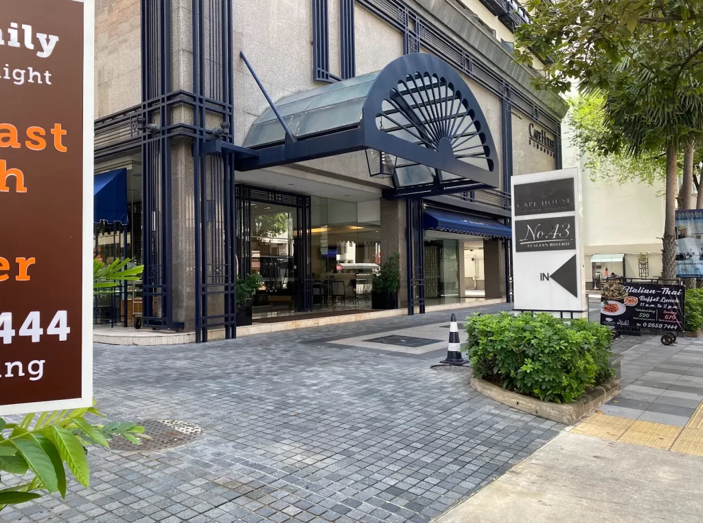 NO.43 Italian Bistroは、プルンチットとチットロムの間、ランスアン通り沿いのケープハウスホテルG階にあります。