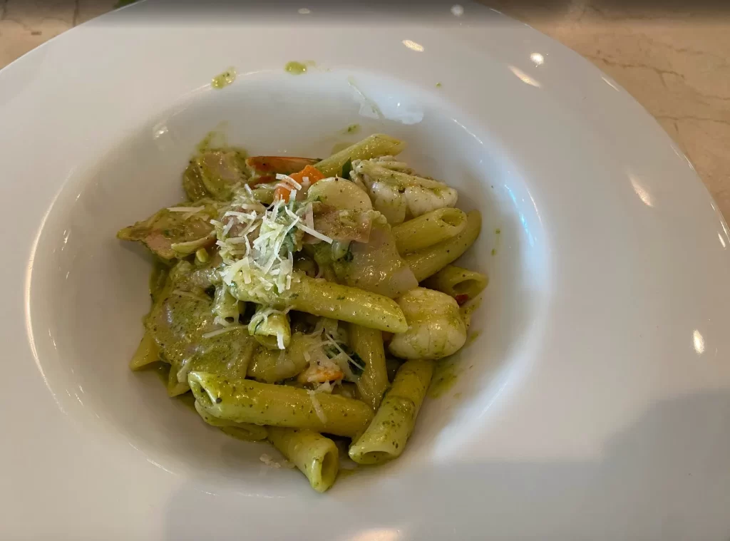 こちらはジェノベーゼペンネ、帆立&エビをチョイス。