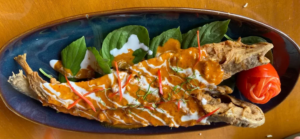 個人的にはティラピアよりプラーガポン(スズキ)の方が好きですが、タイ風のカレーが好きならハマるお味。